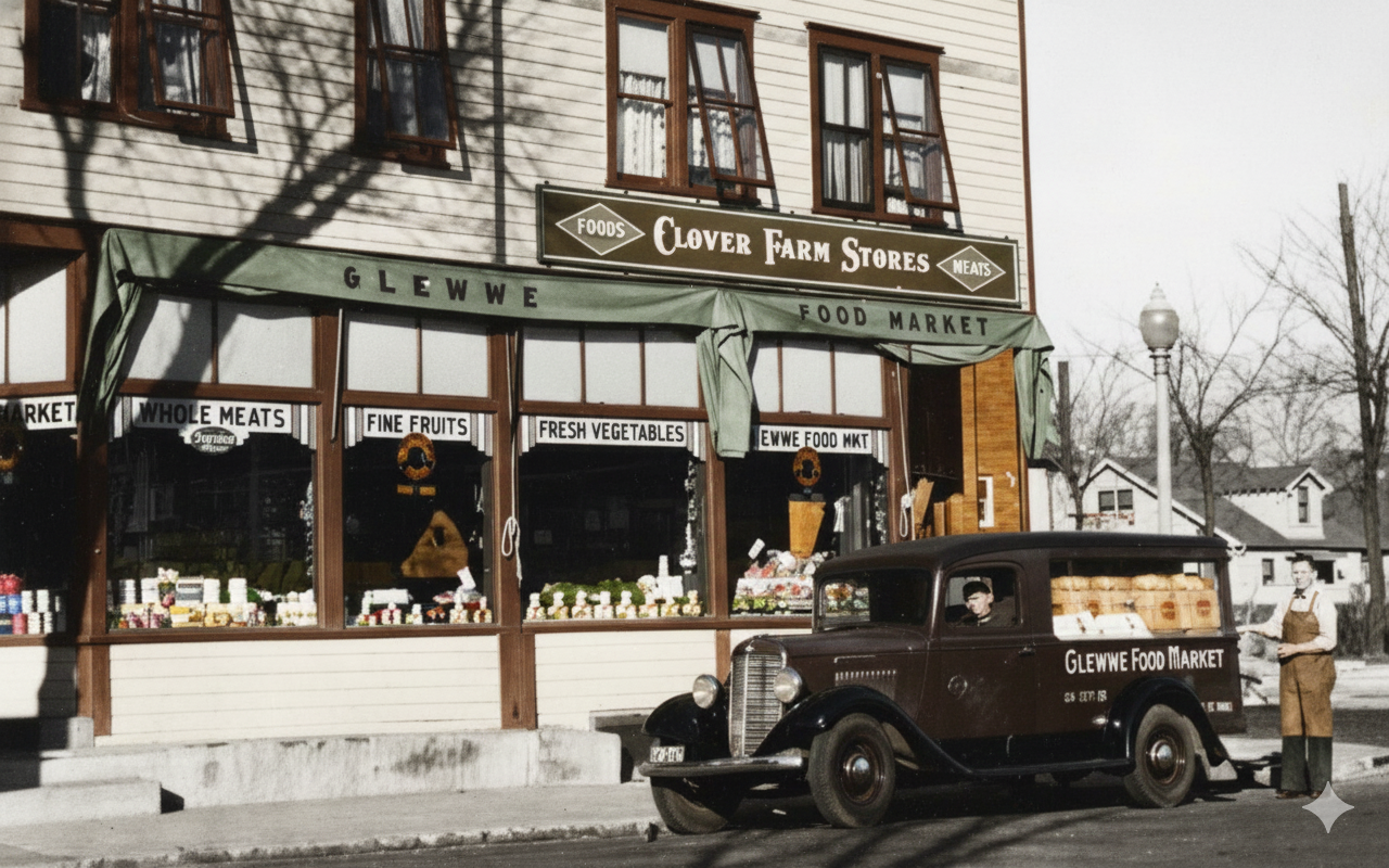 This account of reminiscence is of the time of the beginning of the business when the population of So.St. Paul was between 2000 to 3000 • The Streets were not graded, electricity for the city was being planned and telephones were not yet in common use.The heating of the building was done by the potbellied soft coal stove which dominated the center of the store space. Kerosene lamps were used for light. All this may seem very primitive but there were many other differences