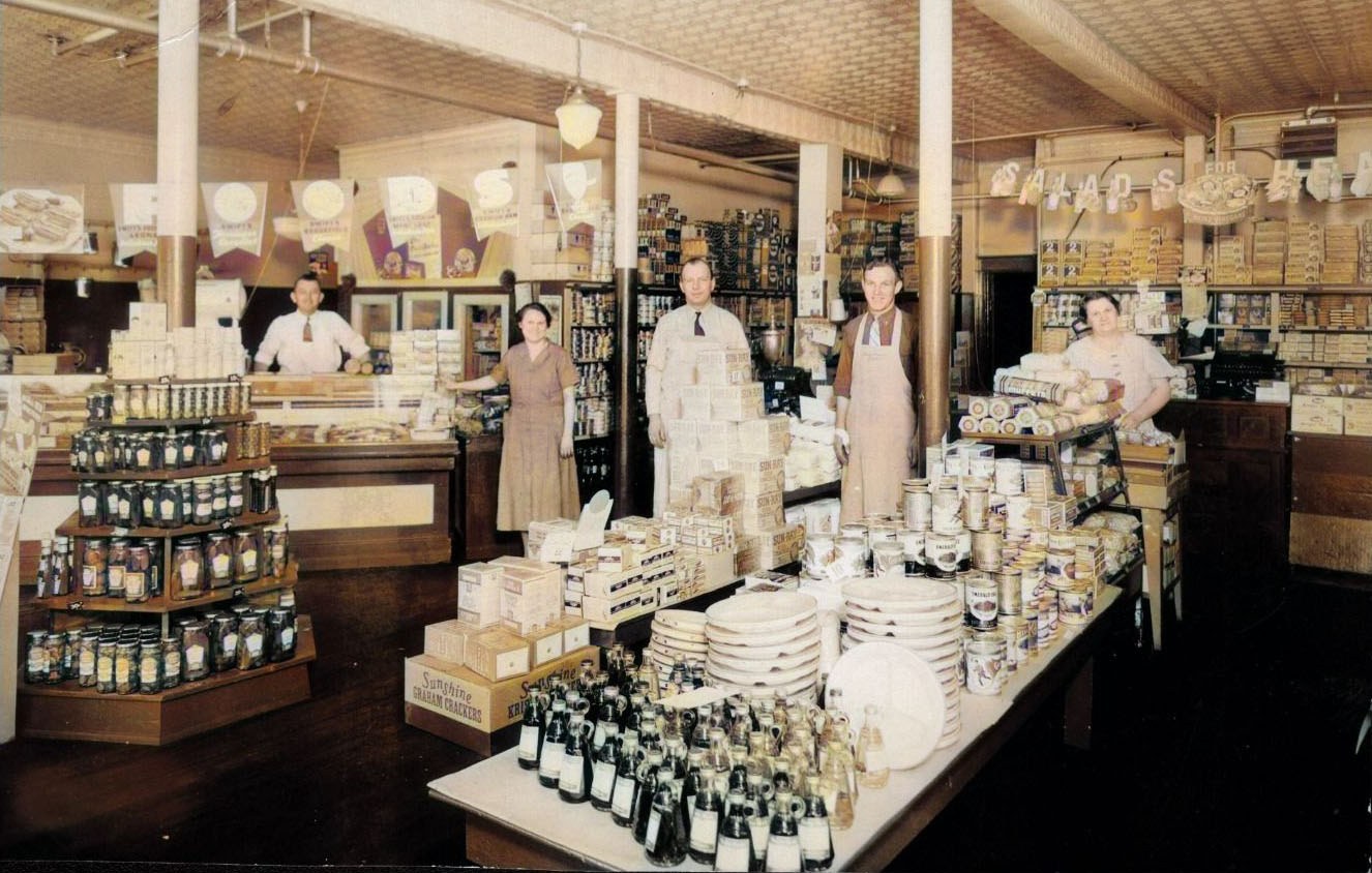 Because of the open spaces, since the city was scattered in all directions, folks would have a horse, sometimes a cow or two and a few chickens. This meant that the grocer must also stock Feed to supply the needs. For this reason, hay and straw by the bale, Oats, Bran and Chicken Feed was one the necessary things to stock even in a Grocery Store.
