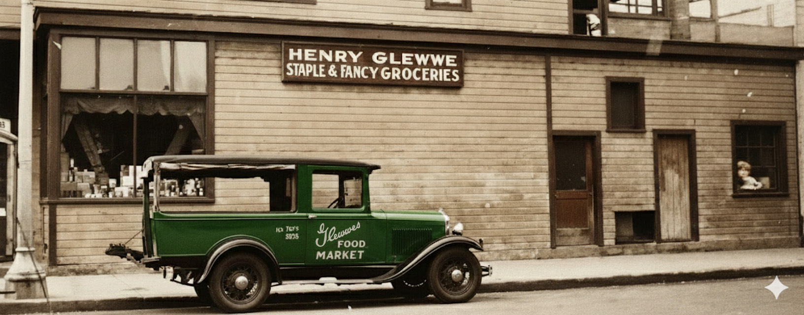 Flour was one of the big items of the times. Most every one did some if not all of the family baking and the use of the old fashioned dry Yeast Foam by which you set the bread the night before baking was generally used. Some Bread,Rolls, and Doughnuts were sold but not packaged and wrapped as we find them today. The Bread delivery wagons used horses and often-the request came from the housewife that they wished that the delivery men would wear white cotton gloves while handling the baked goods, a suggestion that was frowned upon by the delivery men in general.